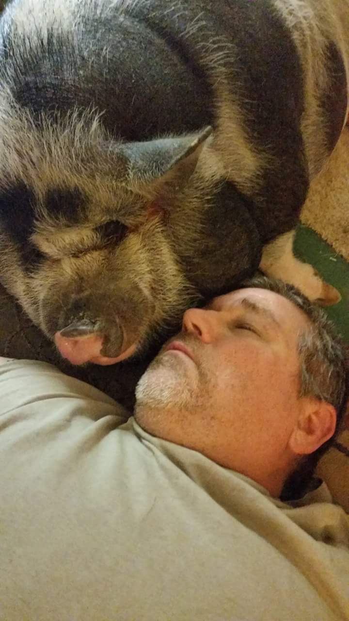 But the baby pot bellied piggy was such an emotional creature that a connection was formed between the two of them. They found comfort and friendship in each other.