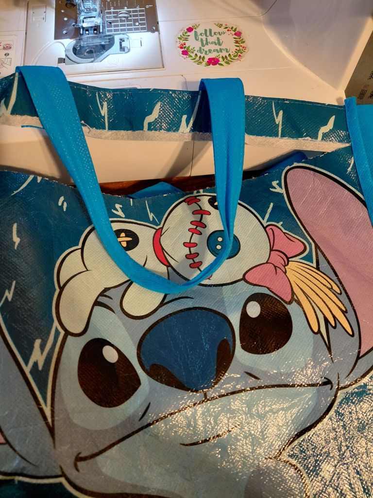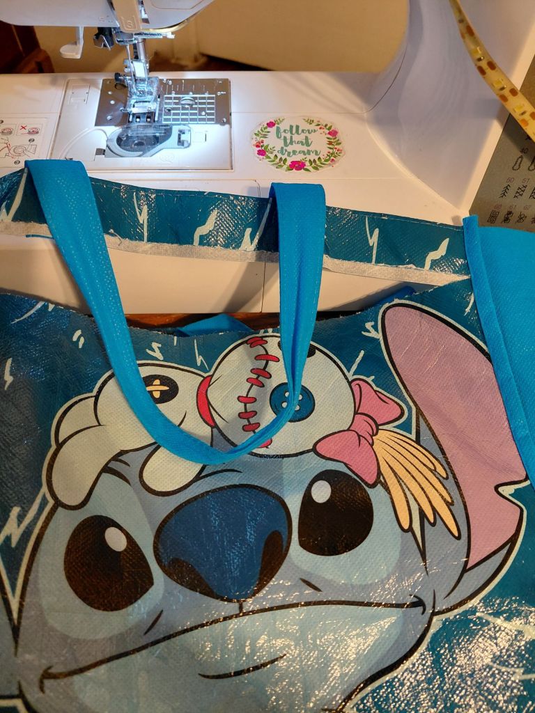 My 23 year old daughter gave me a mending task today. Her work tote bag got torn apart, and she asked me to stitch it back up.