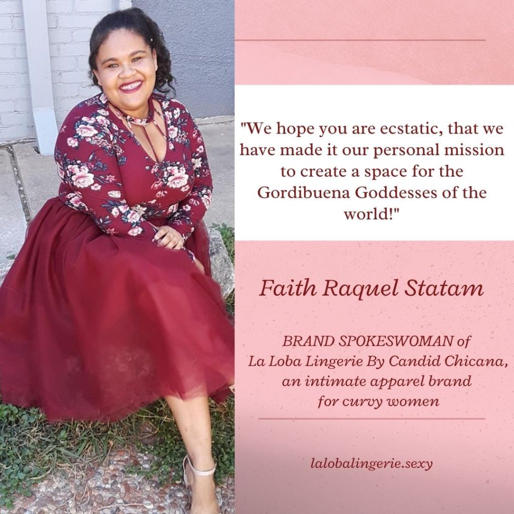Faith Raquel Statam will serve as the Brand Spokeswoman for La Loba Lingerie. Faith has experience in dance and modeling. She will facilitate the events, recruit plus size models for fashion shows, and be the public figure for the La Loba Lingerie brand.